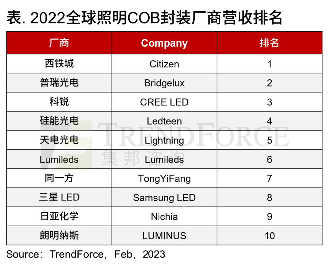 西鐵城蟬聯(lián)COB市場第一,國內(nèi)企業(yè)快步崛起